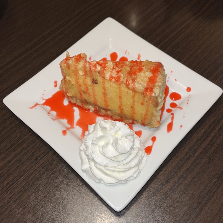 Fried tempura Strawberry topped cheesecake –