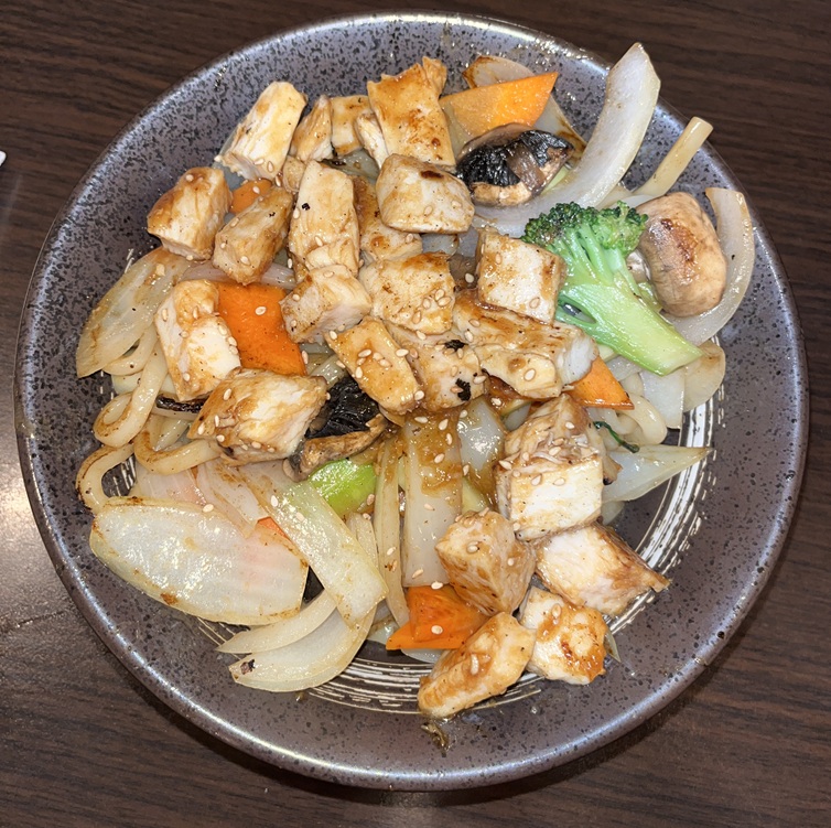 The chicken was dark colored white meat. Sesame seeds and a soy sauce was prevalent on this meat. Lots of vegetables covered the udon, so much so that it took a while to get to the noodles. Nice and chewy in a good way with the noodles.