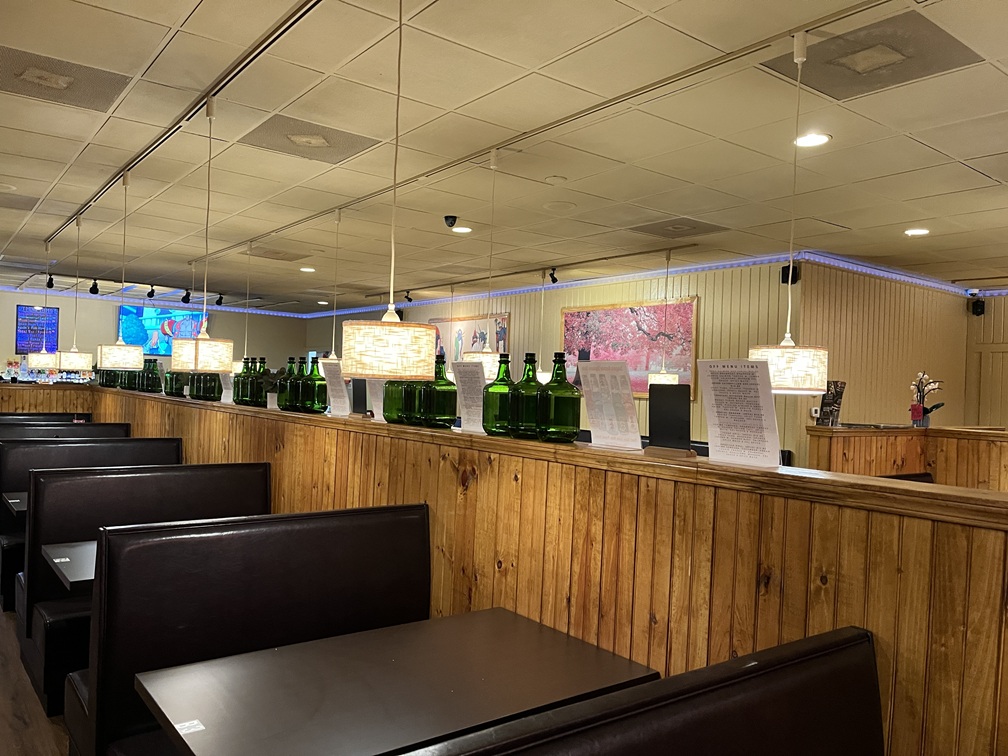 Busy with takeout despite the slower interior. The was a prominent array of red lanterns in the doorway and the ceilings were adorned with a glowing LED light strip that changed colors. It gave the whole location a faster, more modern look.